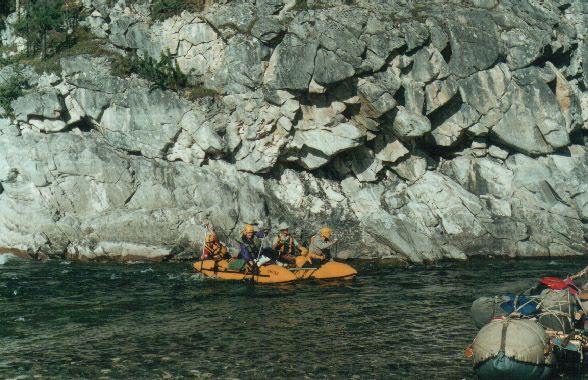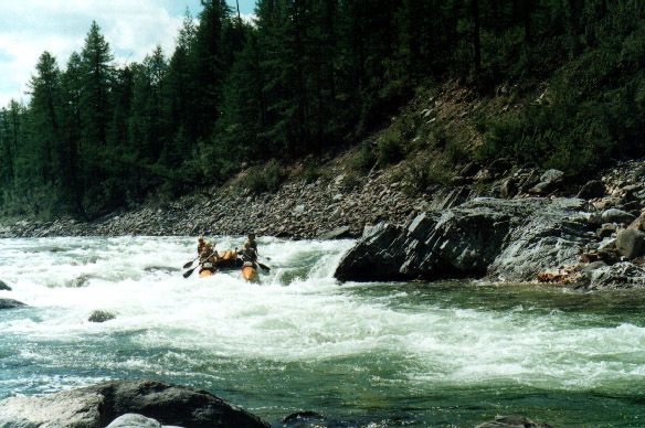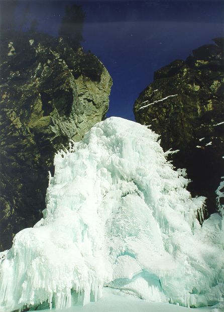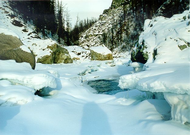 Долго шляясь по сетевым просторам я обнаружил некоторые фотографии Китоя сделанные зимой. Хоть к водному туризму они не имеют отношения, но все равно очень интересно взглянуть на Эхе-Гол без воды или на Порог-Водопад в снегу. К сожалению, ссылки на источник не осталось, или сервер просто не отвечает. Но кажется, это лежит где-то здесь: ... поправка от 09.06.2001 исходники этих фотографий живут на странице "Зимой вокруг Китоя" (http://ys.mmc.ru/ababu.html).